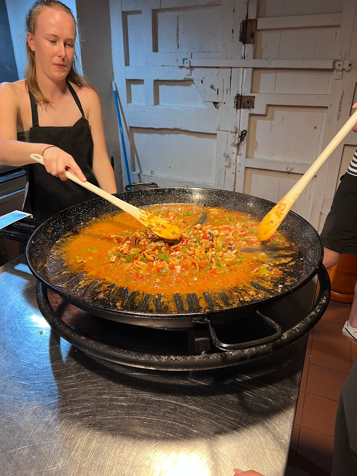 I always try to take a class when I visit a city to learn a little something about the local culture and for Barcelona, we took a paella class. After meeting up with our group (11 Canadians, 1 German and us), chef Andre took us over to Mercat de la Boqueria to get the seafood from his favorite fishmonger before heading to the kitchen. Two very important things we learned...to make a proper paella, it takes about 1.5 to 2 hours as you cook in layers AND only tourists eat paella later in the day.