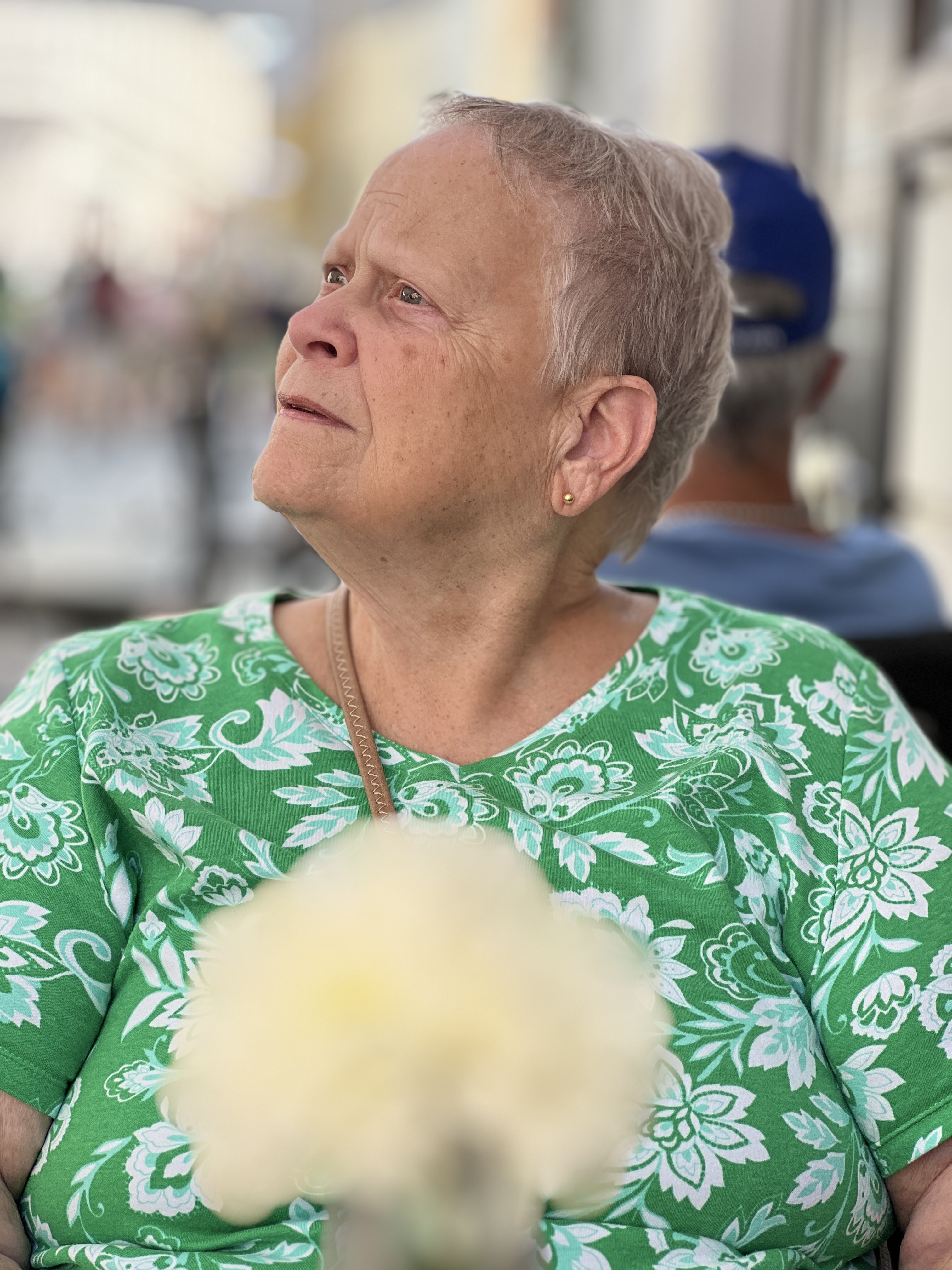 The tram drops you off at Old Town and since we were feeling a little peckish, we decided to have some lunch. We found Dolnozemská krěma and really enjoyed our meal. LuLu had the Hubové rizoto so sous-vide bravčovou panenkou a syrom Volovee (mushroom risotto with pork) and I had Tradične domáce Bryndzové halušky so slaninkou z mangalice (potato dumplings with sheep cheese and bacon). Just like Austria, the water in Slovakia is very good so definitely feel free to order tap water…most places it is free. While we were waiting for lunch, LuLu was checking out the area and doing some people watching.